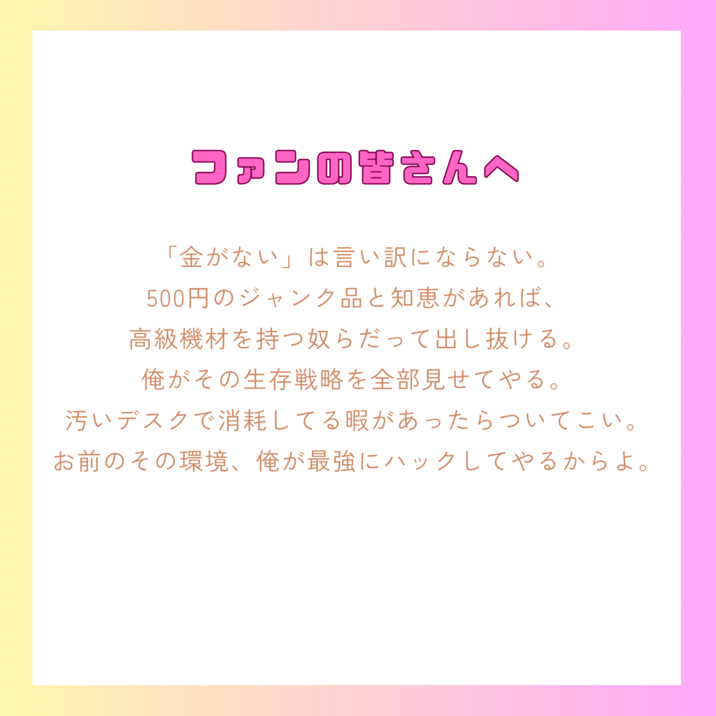 「書き割りのサイバーパンク四畳半」を拠点に、